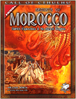 It so happens that Secrets of Morocco (formerly Mysteries of Morocco) is at the printer. In a previous post I mentioned the difference between the two "editions" of the book. Nothing much has changed since then. The book is still set in Morocco (this is a relief otherwise the title would make no sense), and it has plenty of information about the history of the nation from its early days as a Roman outpost through the 1930s. There is one thing that I didn't elaborate on previously, and that is the inclusion of some Pulp Cthulhu content. This material can be used by Call of Cthulhu players, or by Pulp Cthulhu players. At the very least, the Pulp Cthulhu content should offer a sneak peek into the upcoming Pulp Cthulhu book.